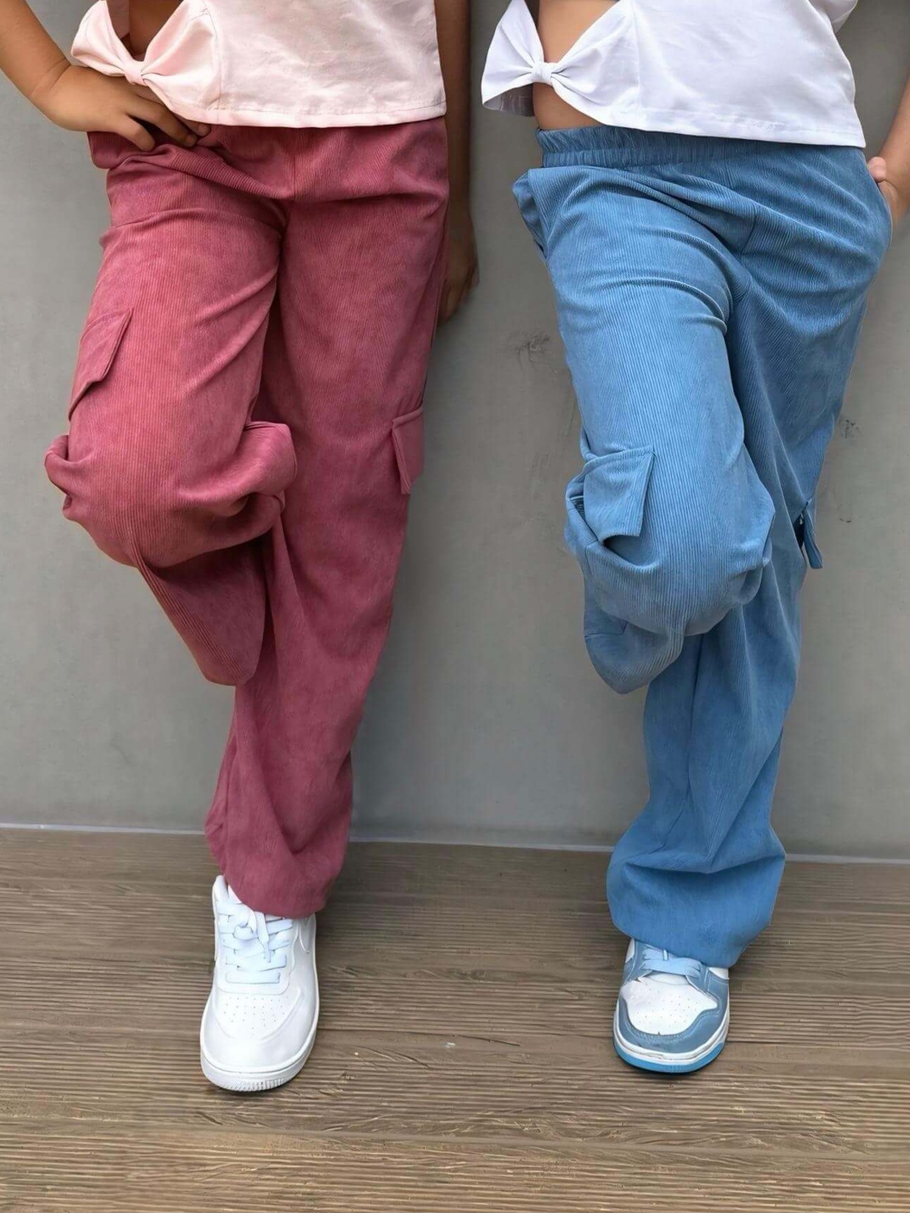 Calça wideleg com bolsos laterais confeccionda no tecido cotele veludo